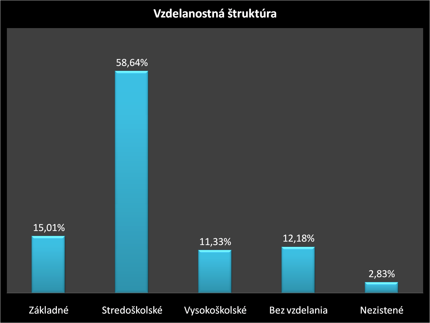 Z tabuľky vidieť, že najväčší počet obyvateľov disponuje základným vzdelaním a učňovským vzdelaním. Nárast vysokoškolsky vzdelaných obyvateľov nastal v posledných desiatich rokoch, čo je výborný ukazovateľ z hľadiska uplatnenia sa na trhu práce.