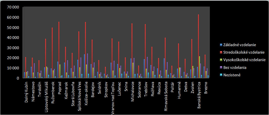 Graf vzdelanostnej štruktúry obyvateľstva okresov