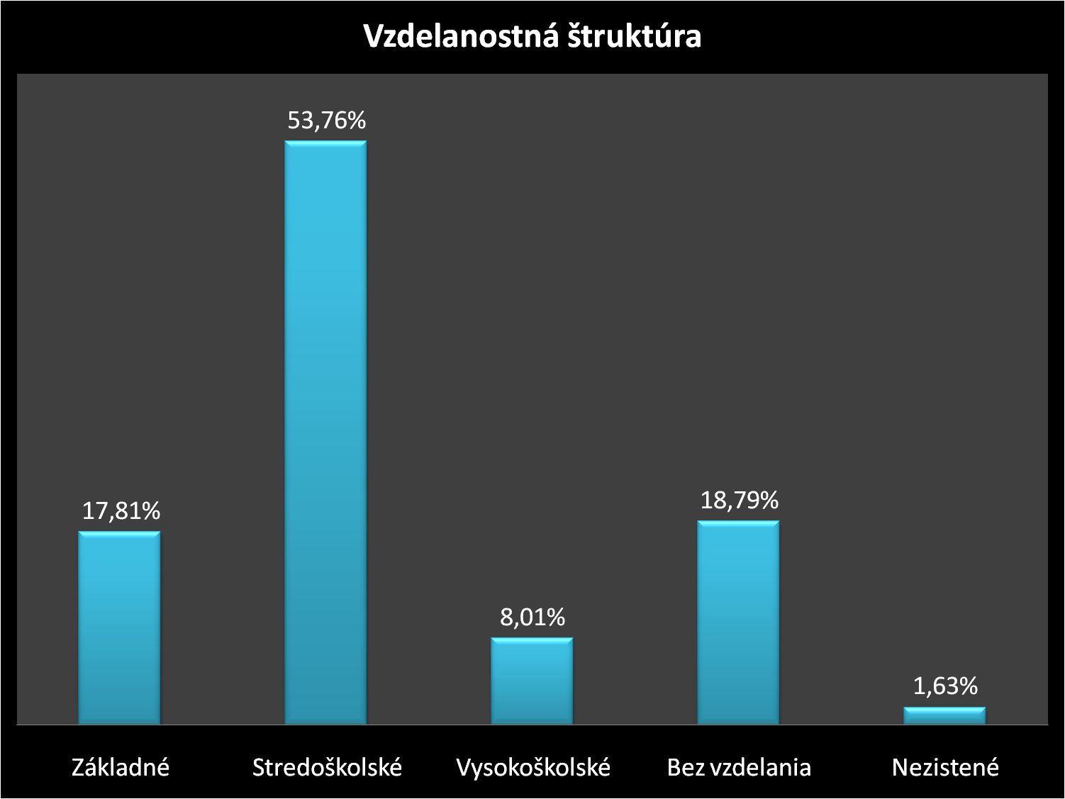 Negatívom obce je, že druhou najväčšou skupinou sú ľudia bez vzdelania a to 18,79%.